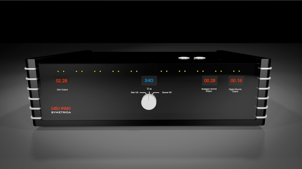 After installing a SYMETRICA into a system, the first thing that you will notice is that the speakers will disappear, the soundstage expands and comes from a vivid deep space in front of you, portraying a greater sonic landscape, quite a startling change from without the unit in place! Secondly, you will notice the bass, it is now cleaner, and deeper, with better flow and a richer harmonic structure, and seemingly effortless, truly different to without the unit. The mid range takes on more presence, while the high frequencies extend and become smoother with less etch, far more akin to very good analogue. It quickly becomes apparent that the pre-existing noise floor that was thought to be ‘low’, has disappeared altogether! The big discovery though was what the SYMETRICA can do for digital, which is lift the humble redbook CD to the level where it is very close to very very good vinyl, and this was quite a revelation to us all that heard this difference at that time. Part of the reason for this is that the SYMETRICA has not one but 3 individual balanced output transformers, custom built to our specification within it’s substantial handbuilt casework. One 300Va transformer can be utilised specifically for digital equipment, ie DAC’s, transports, servers, CD player etc, thus isolating the analog source equipment and amplification from the hash emitted by digital electronics. Additionally, a second 300Va transformer is used for powering analogue source components, or, to considerable benefit, a phono stage along with a turntable motor unit for instance. This combination is truly essential to serious music and audio lovers. The third and by far the largest transformer is either 1.5 or 2Kva, and is for amplification devices that require more current. All sections have dedicated current output displays, and a voltage display indicates input and seconday outputs, switchable between the two. These display’s can be switched off from a pushbutton easily accessible on the top panel. All too often you will hear about connecting power amplifiers to mains supply devices, whether it is good or not, and in our experience with all of the units previously used, none responded positevly to powering amplifiers. With a SYMETRICA you can, and must, connect all amplifiers to benefit from the common single earth connection. The standard SYMETRICA will provide up to 6.6 amps of continous AC current, and 8.8 amps for the 2Kva model. Most soild state class A/B power amplifiers will only draw around 1.5 -2.5 amps, with big high output valve amps such as a customers class A Convergent Audio Technology JL3 drawing around 4.8 amps, still only using 50% of the available AC current limit before core saturation will occur.
